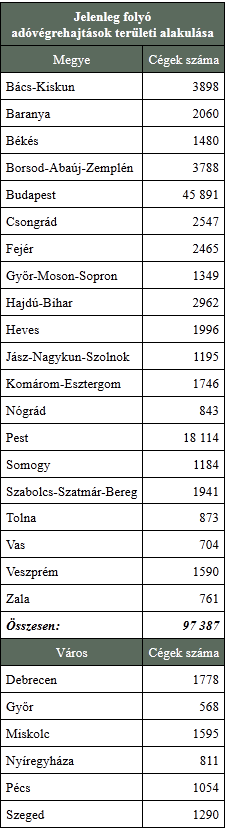 Az adóvégrehajtások területi alakulása