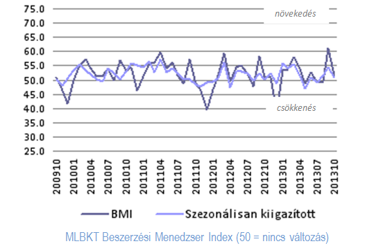 A beszerzési mennyiség indexe csökkent szeptemberi értékéhez képest, de egyúttal a mennyiség további emelkedését jelzi. A mostani érték még így is bőven meghaladja az elmúlt három év átlagát, hogy a tizenkettdik legmagasabb októberi adat. A beszerzett mennyiség kilencszer növekedett eddig az idei év folyamán.