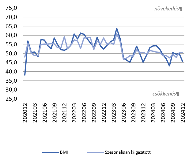 A Beszerzési Menedzser Index (BMI) szezonálisan kiigazított decemberi értéke: 50,6.