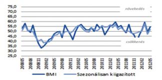 A Beszerzési Menedzser Index (BMI) szezonálisan kiigazított májusi értéke: 52,2.